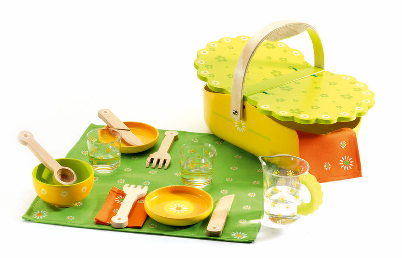 Spread out the rug, it's time for a teddy bears picnic! Youll have everything that you need with this adorable retro-inspired picnic basket and set. It includes a flower print tablecloth and two matching cups, plates, bowls, knives, forks, spoons, napkins and drinks jug. This set is suitable for little hands, with hard-wearing accessories that are easy to pick up and handle.